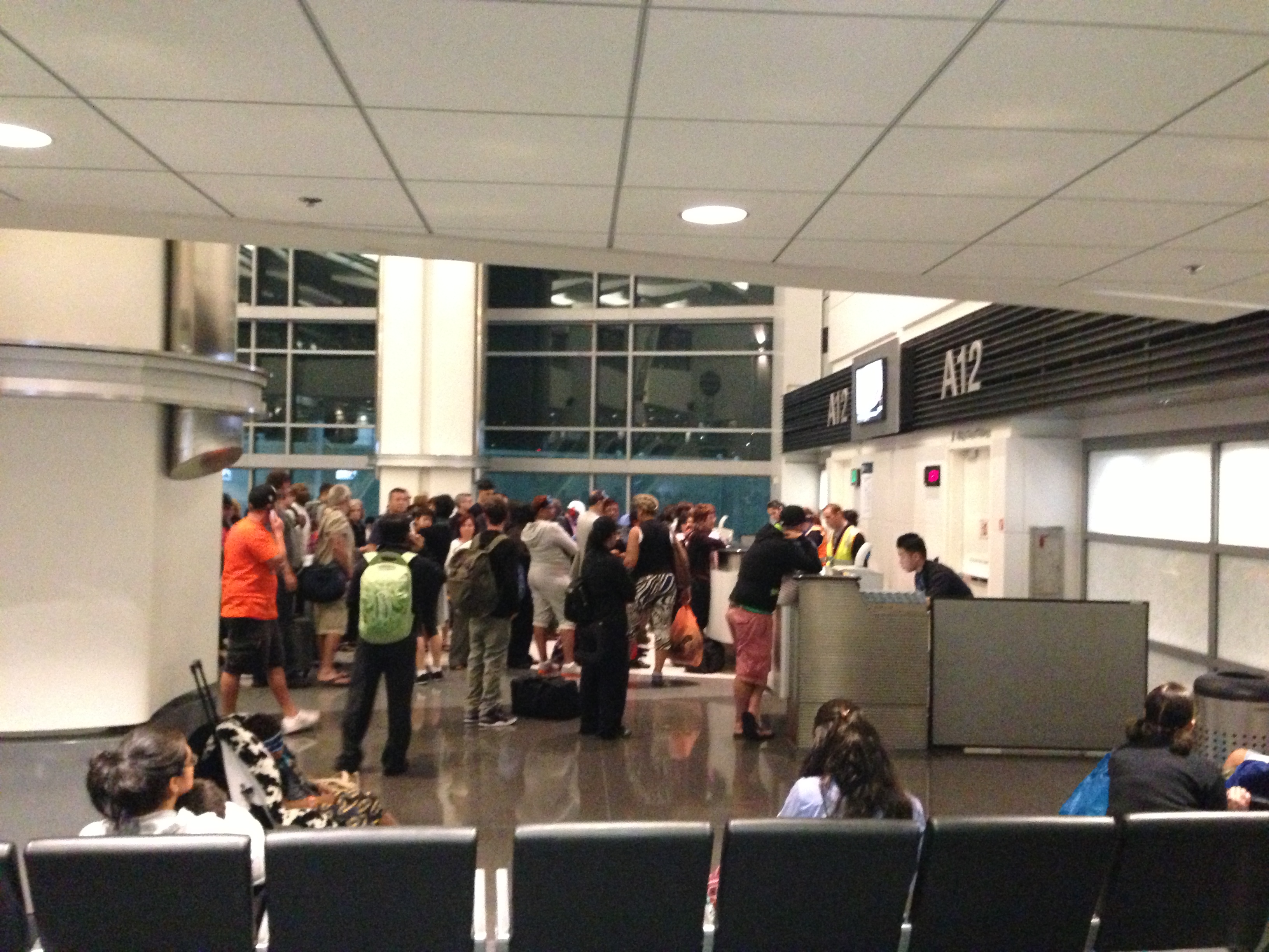 UPDATE 4:11 AM – The current situation is that we’ve all been made an offer to get on our plane tomorrow morning, 12 hours after our original flight time. The only forms of compensation that have been formally offered are: