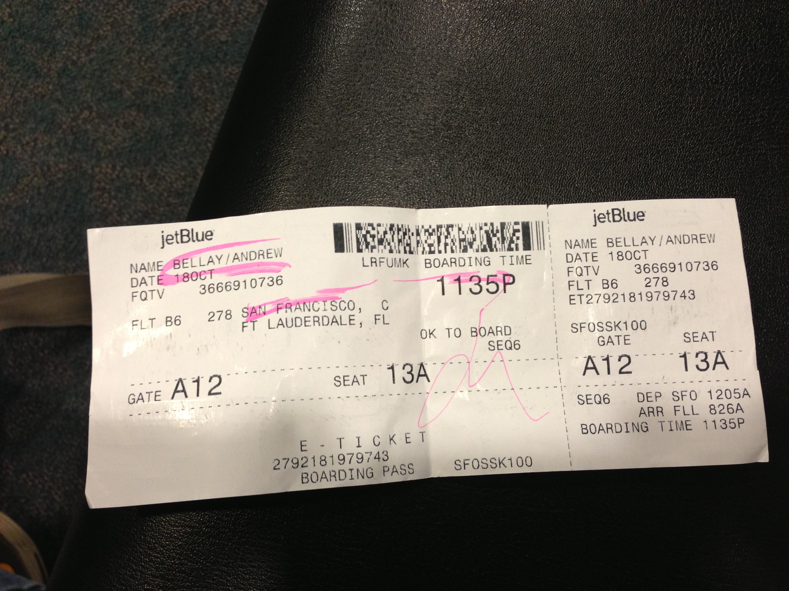 Flight 278: a red-eye from San Francisco (SFO) to Fort Lauderdale (FLL). It really has turned into a red-eye…We were supposed to depart at 11:28 PM, Wednesday Oct 17. We didn’t.